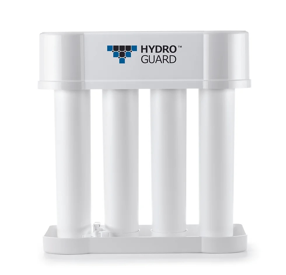 Reverse Osmosis (R.O.) is one of the most convenient and economical methods of reducing unwanted contaminants in your drinking water. Reverse Osmosis is the process by which water molecules are forced, by water pressure, through a semipermeable membrane. Most of the impurities and other contaminants are rinsed to the drain while the refined water is routed to a special holding tank. Hydro Guard  Reverse Osmosis Drinking Water System uses the latest advances in plastics technology to produce the most streamlined and user friendly R.O. system on the market. In addition, this system is validated by the National Sanitation Foundation (NSF) Water Quality Association (WQA) under Industry Standard S-300-9.